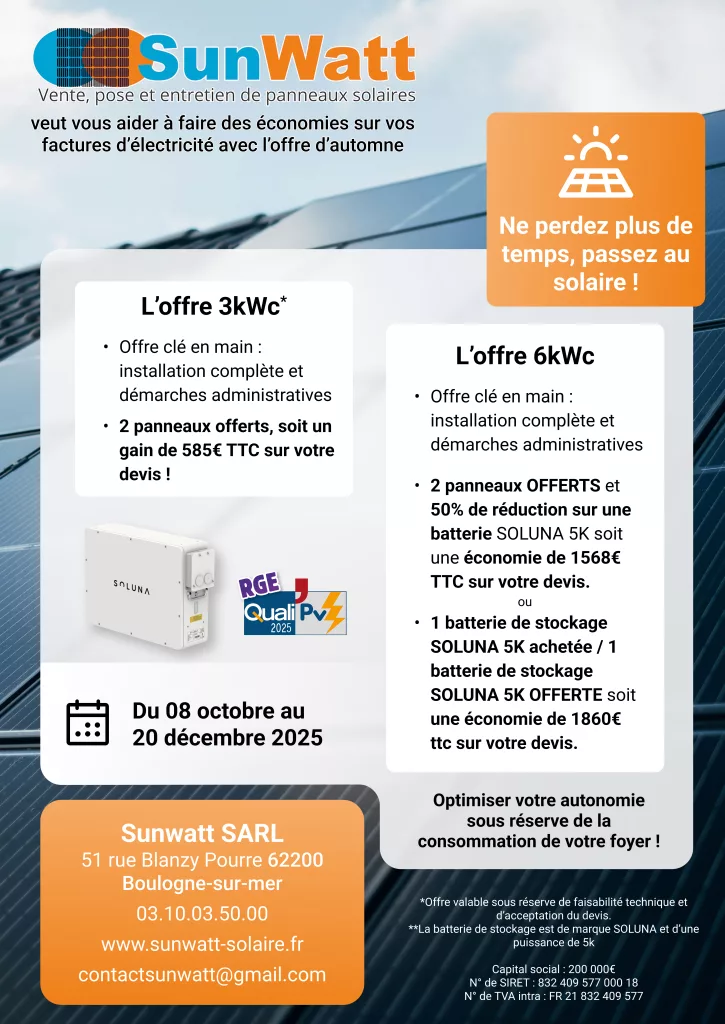 Passez au solaire cet automne avec Sunwatt, votre partenaire énergie dans les Hauts-de-France.